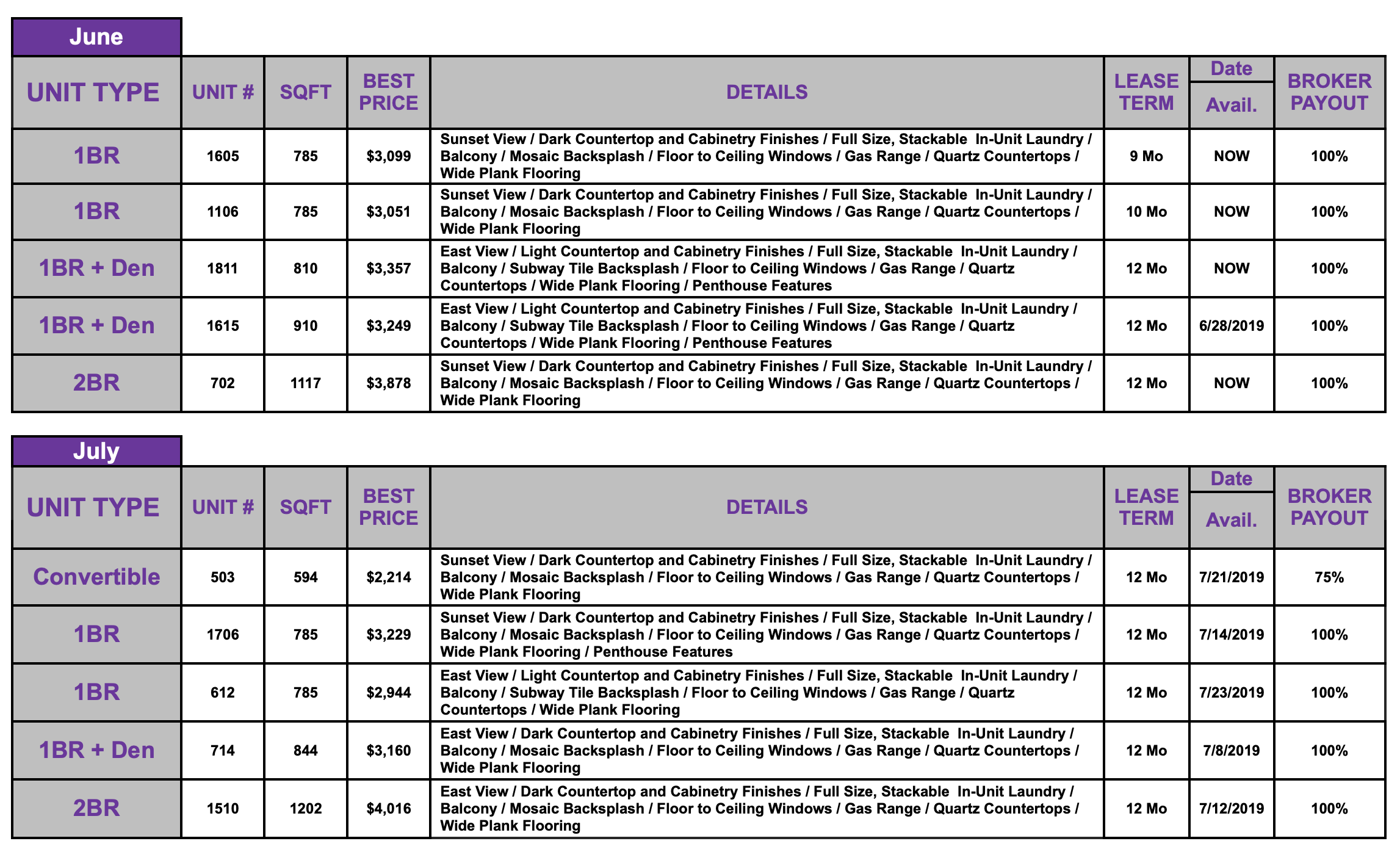 Prices include utilities: water, gas, trash, sewer, heat, A/C, high-speed internet, and cable.