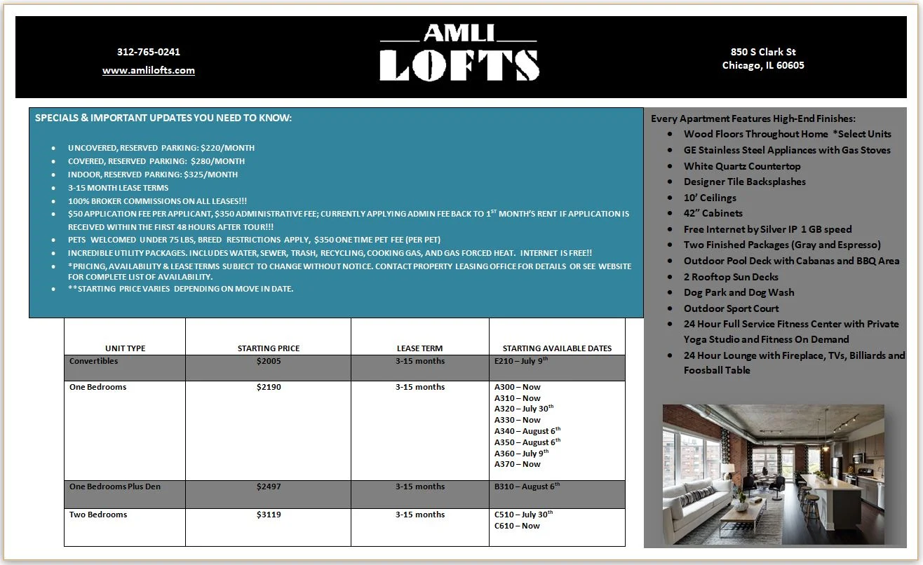 Prices include utilities: water, gas, trash, sewer, heat, A/C, high-speed internet, and cable.