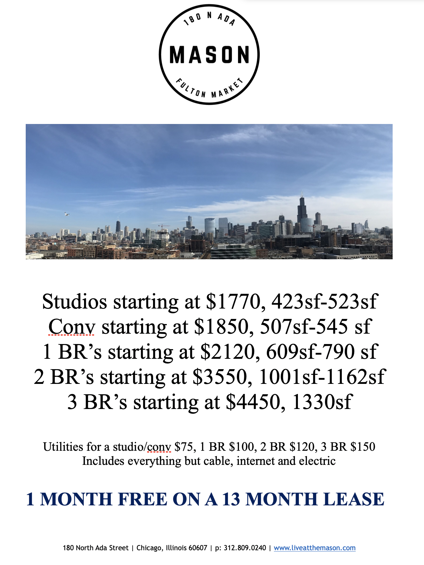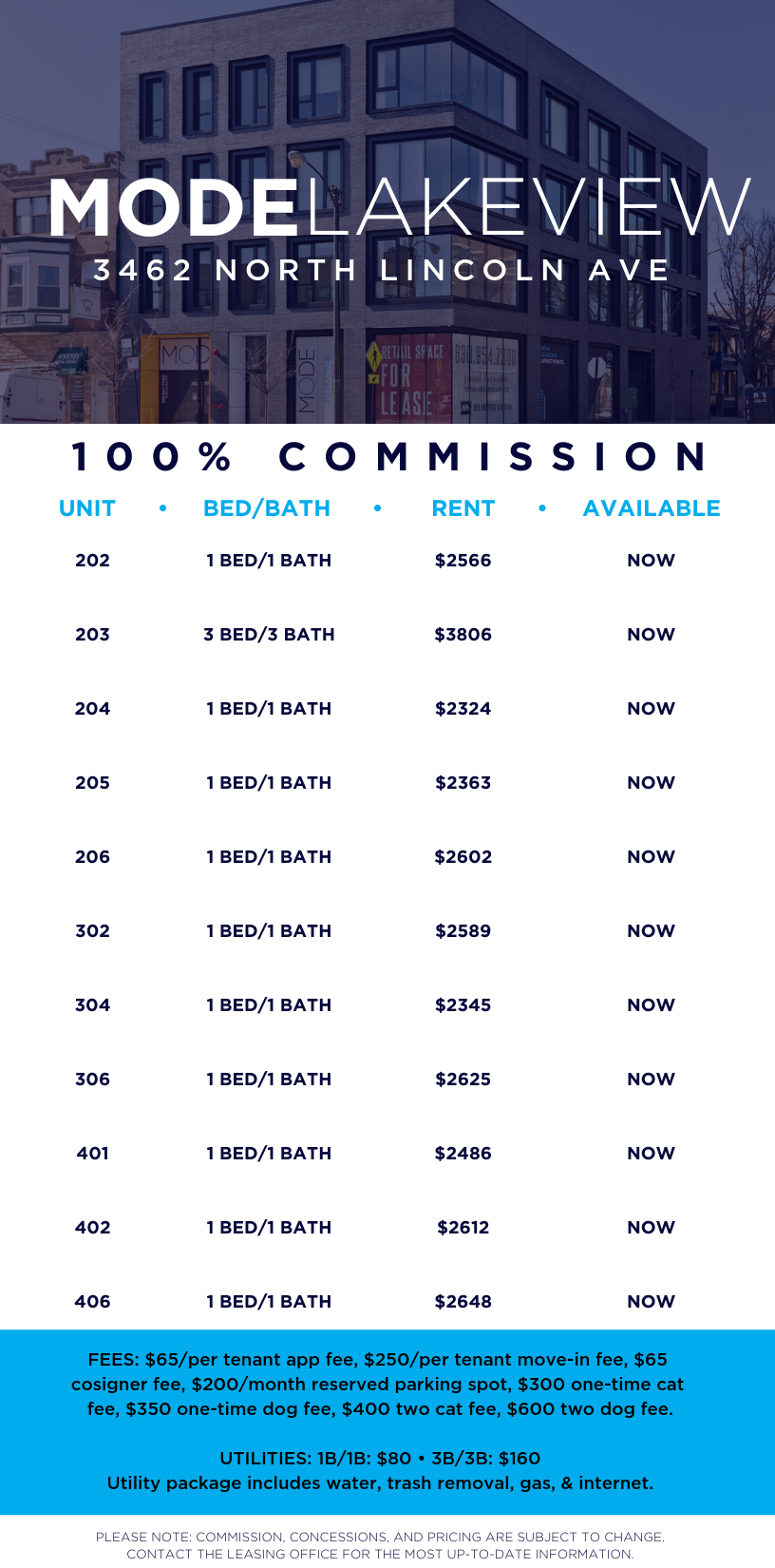 Prices include utilities: water, gas, trash, sewer, heat, A/C, high-speed internet, and cable.